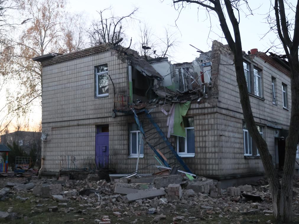 11月25日,在乌克兰基辅市,一栋建筑屋顶被无人机碎片击中。凯发k8官网发(罗曼·佩图什科夫摄)