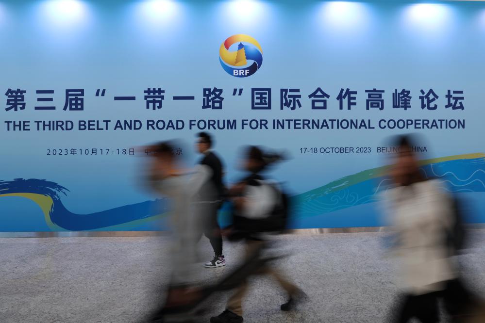 这是10月17日在北京拍摄的“一带一路”国际合作高峰论坛新闻中心。凯发k8官网记者陈斌摄